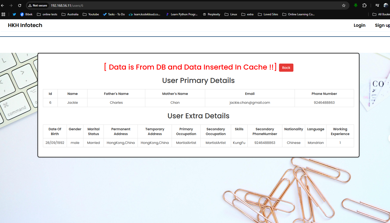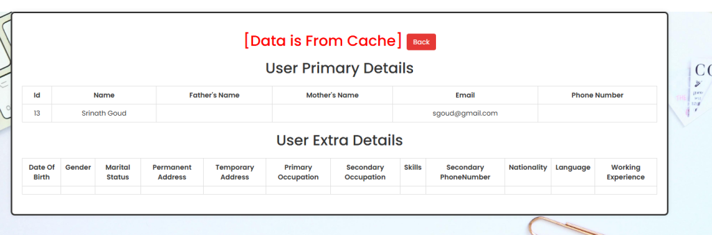 McCache: There is all user button which list all the users from database, data is coming from DB and data is inserted into Cached. It means all the services are validated.