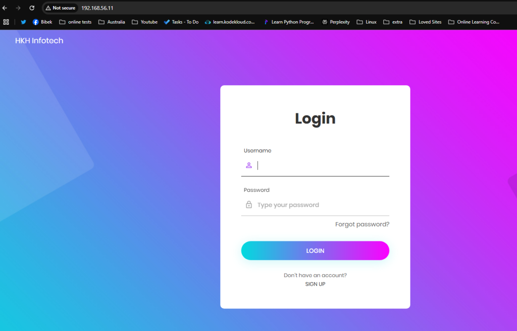 Login: nginx has taken the request and forwarded to tomcat. This page is coming from Tomcat. Vprofile application lives in Tomcat. Web01 is able to connect Tomcat. Similarly, application is running this means its validated and three things validated that is, Nginx, Tomcat Application and Database