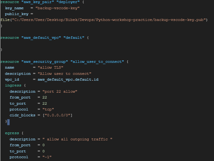 For quick reference of key-pair write go to https://registry.terraform.io/providers/hashicorp/aws/latest/docs/resources/key_pair