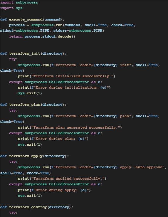 This code will make automate execute the command of terraform like of terraform init, terraform_plan, terraform_apply and terraform_destroy