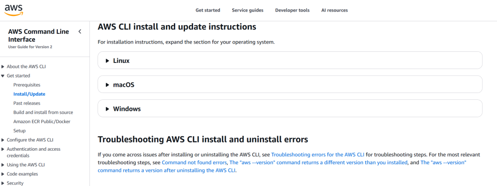 This given link provides the path to install AWS CLI in your operating system. If you have Linux or macOS or Windows, you need to choose according to your operating system to operate AWS CLI. Link: Installing or updating to the latest version of the AWS CLI – AWS Command Line Interface