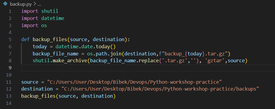 On the backup.py file i have created source and destination path for backup creating file into compress file on todays date.