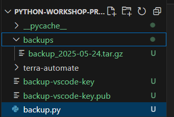 As you can see in the picture below, tar.gz file has been created in backups directory on VScode using Python